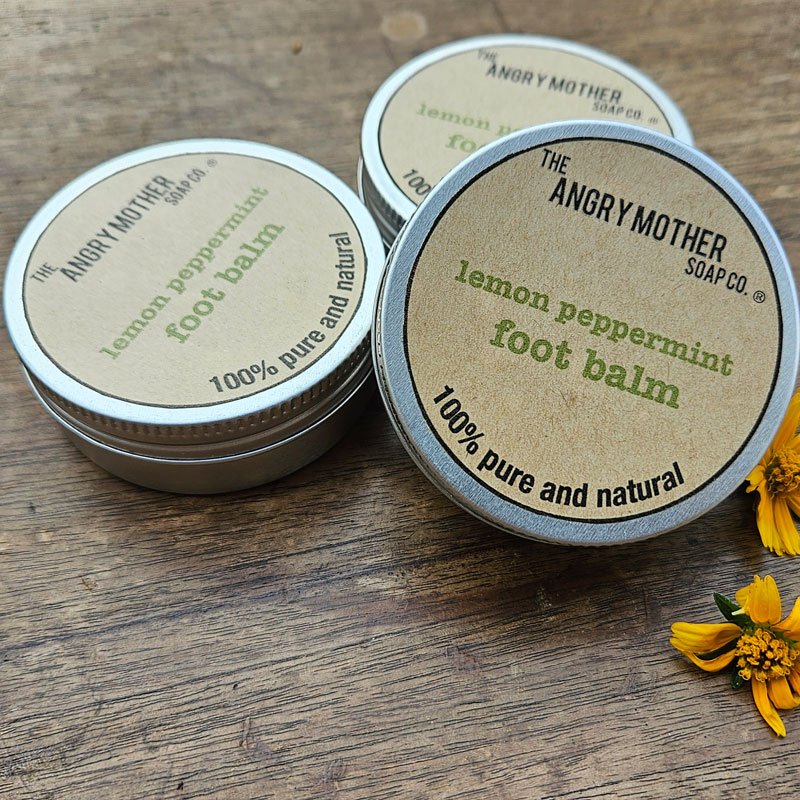 Shea butter, almond oil, beeswax, peppermint & lemon essential oils